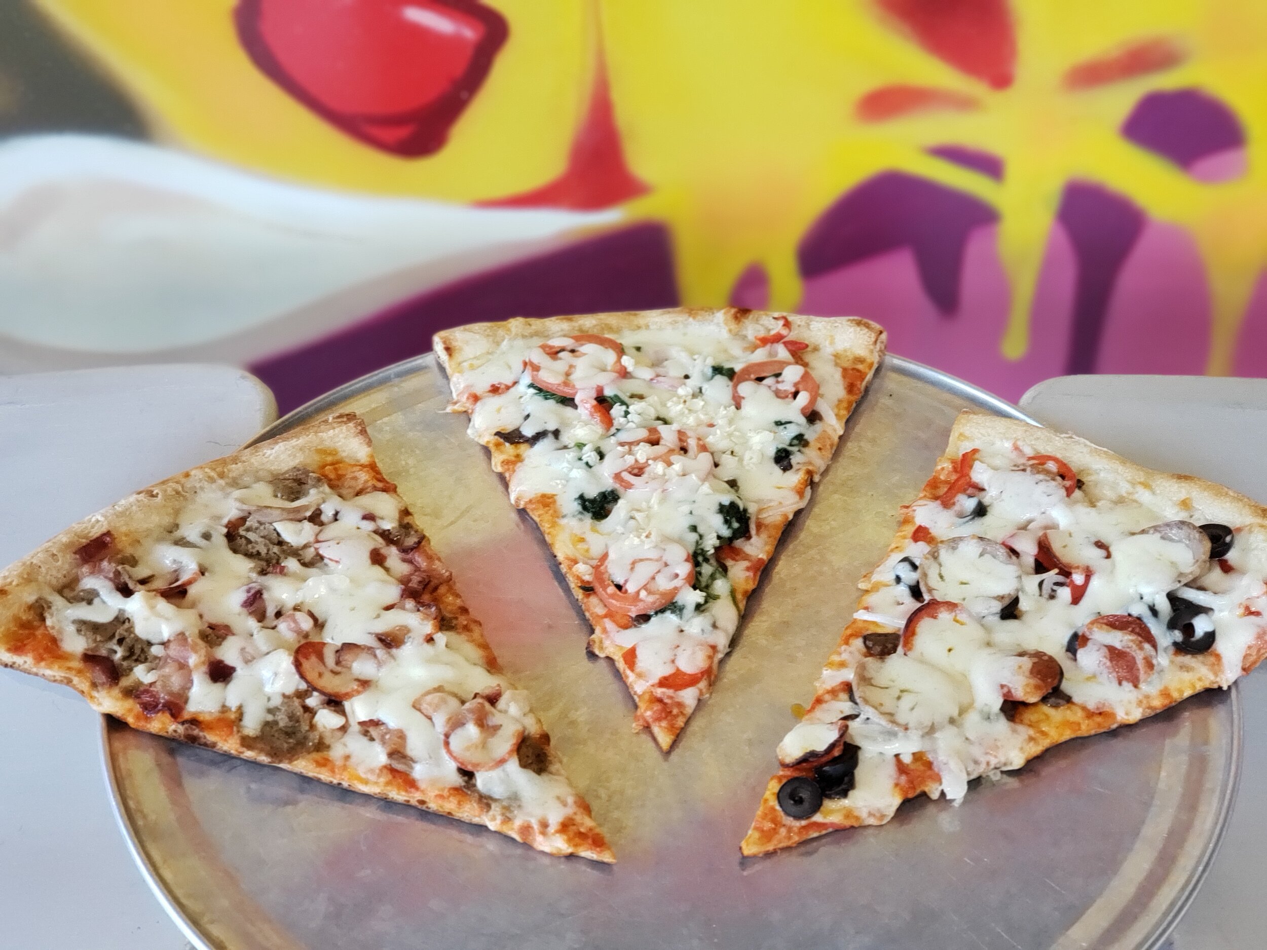 Junior's Pizza interior reflects the personality of the owners while showcasing the work of great local artists. The casual feel of the restaurant enables everyone to feel welcome while the open kitchen allows guests to see how we make our pizza.